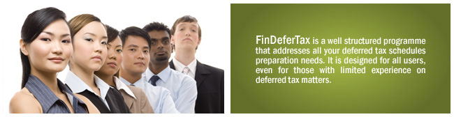 FinDeferTax is a programme with pick-up-and-use feature that turns the time consuming and complicated undertaking of preparing deferred tax schedules into a simple task with improved accuracy.
